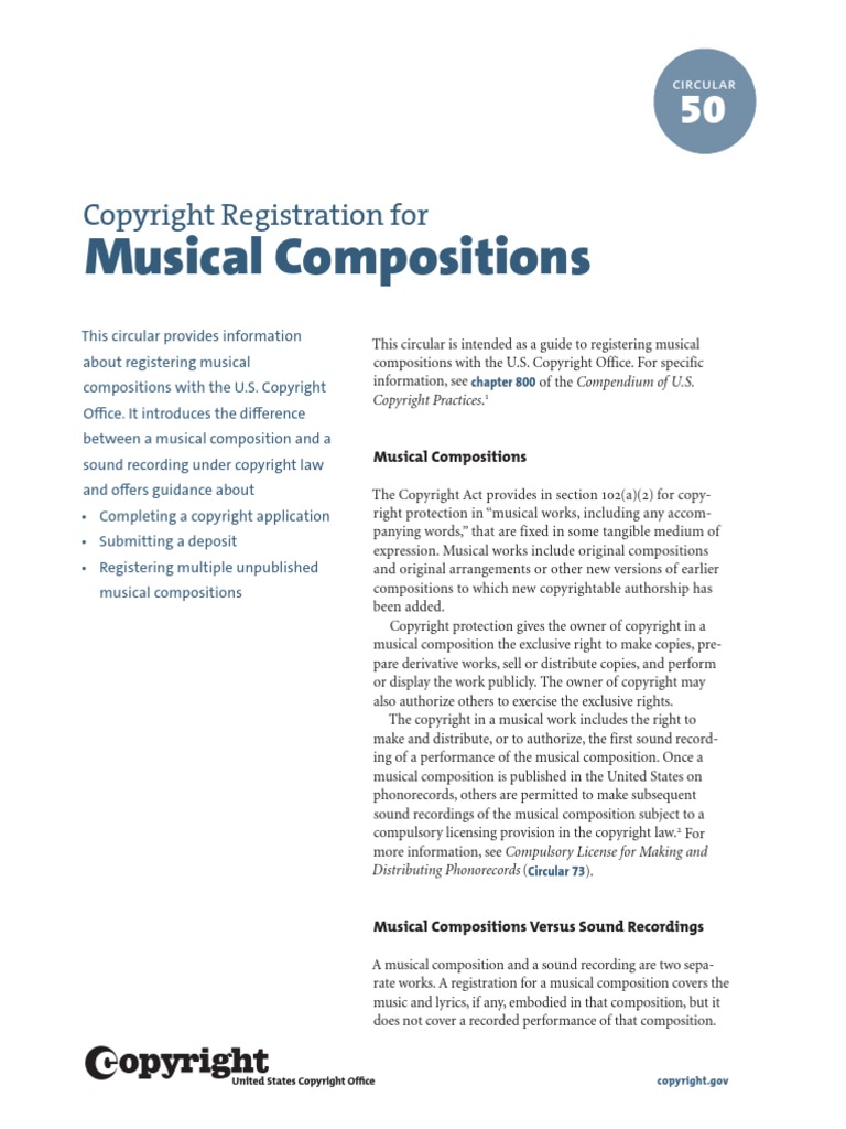 about registering musical compositions with the U.S. Copyright Office. For specific