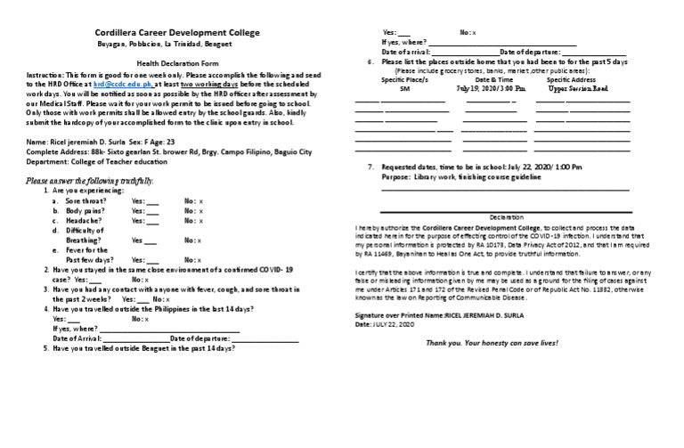 Yes: ___ No: x Signature over Printed Name:RICEL JEREMIAH D. SURLA