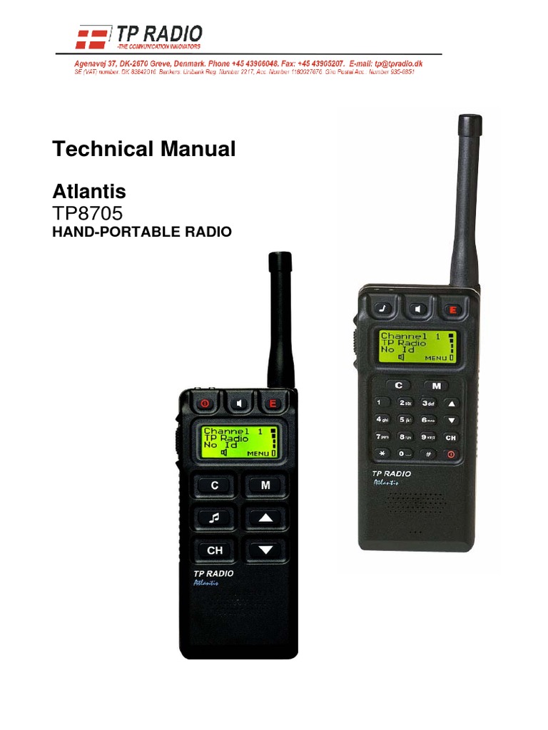 The TP8705 is a PMR-band hand-portable two-way radio. This radio must not be used unless you have a valid licence