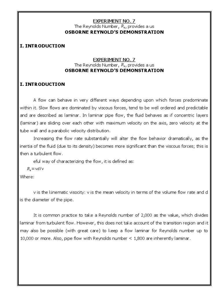 Osborne Reynold'S Demonstration: Experiment No. 7