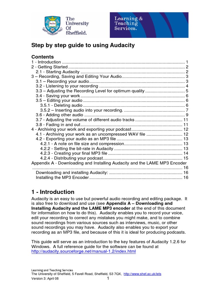 4.2 - Exporting your audio as an MP3 file ..................................................... 13