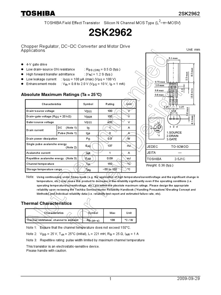 Repetitive avalanche energy (Note 3) EAR 0.09 mJ TOSHIBA 2-5J1C