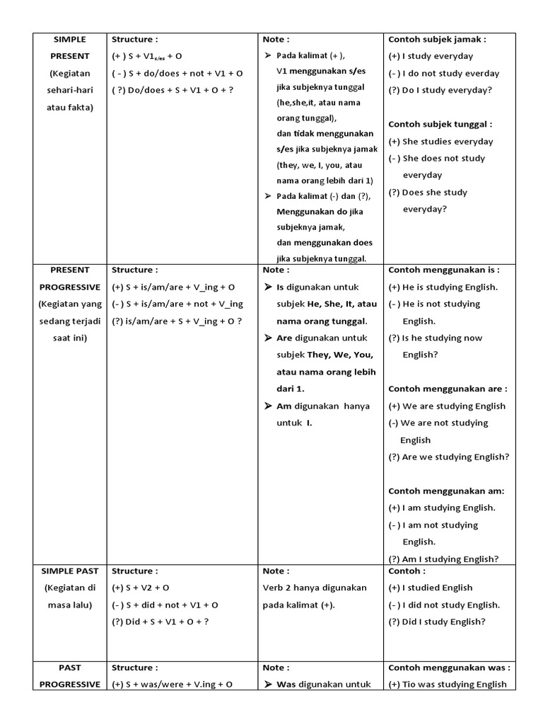 (Kegiatan di (+) S + V2 + O Verb 2 hanya digunakan (+) I studied English