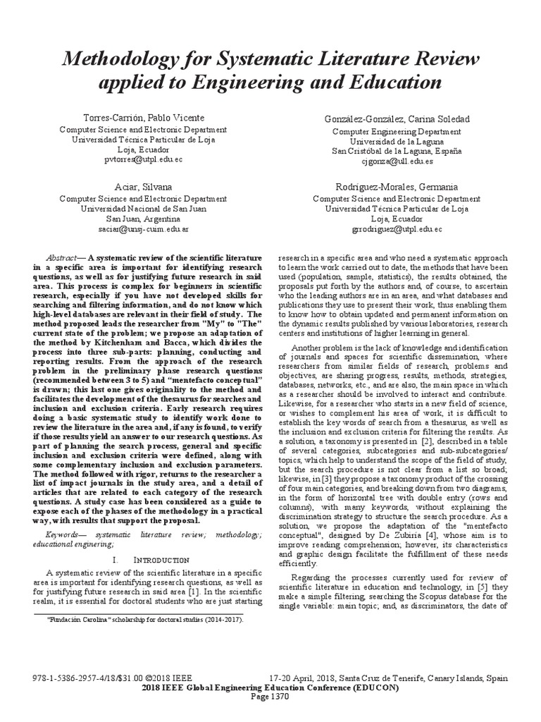 Methodology For Systematic Literature Review Applied To Engineering and Education