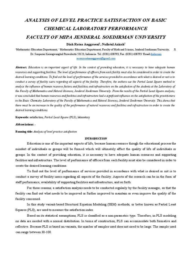 Keywords: satisfaction, Partial Least Square (PLS), laboratory