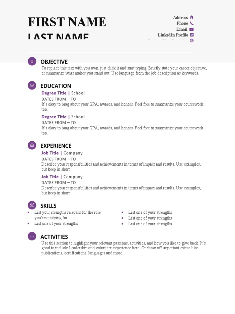 To replace this text with you own, just click it and start typing. Briefly state your career objective,