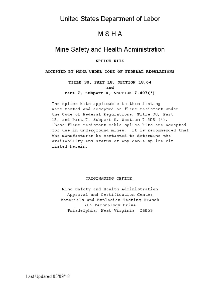 ACCEPTED BY MSHA UNDER CODE OF FEDERAL REGULATIONS