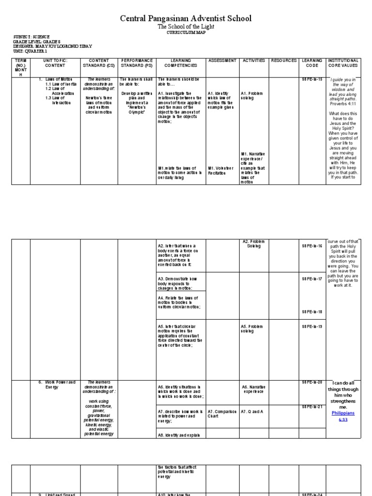 1. Laws of Motion The learners The learners shall The learners should be S8FE-Ia-15 I guide you in