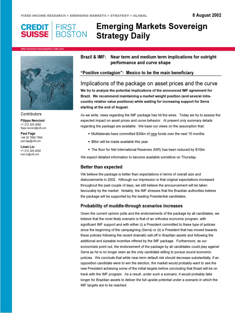 FIXED INCOME RESEARCH > EMERGING MARKETS > STRATEGY > GLOBAL 8 August 2002