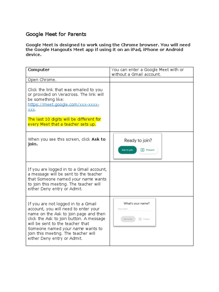 Google Meet for Parents