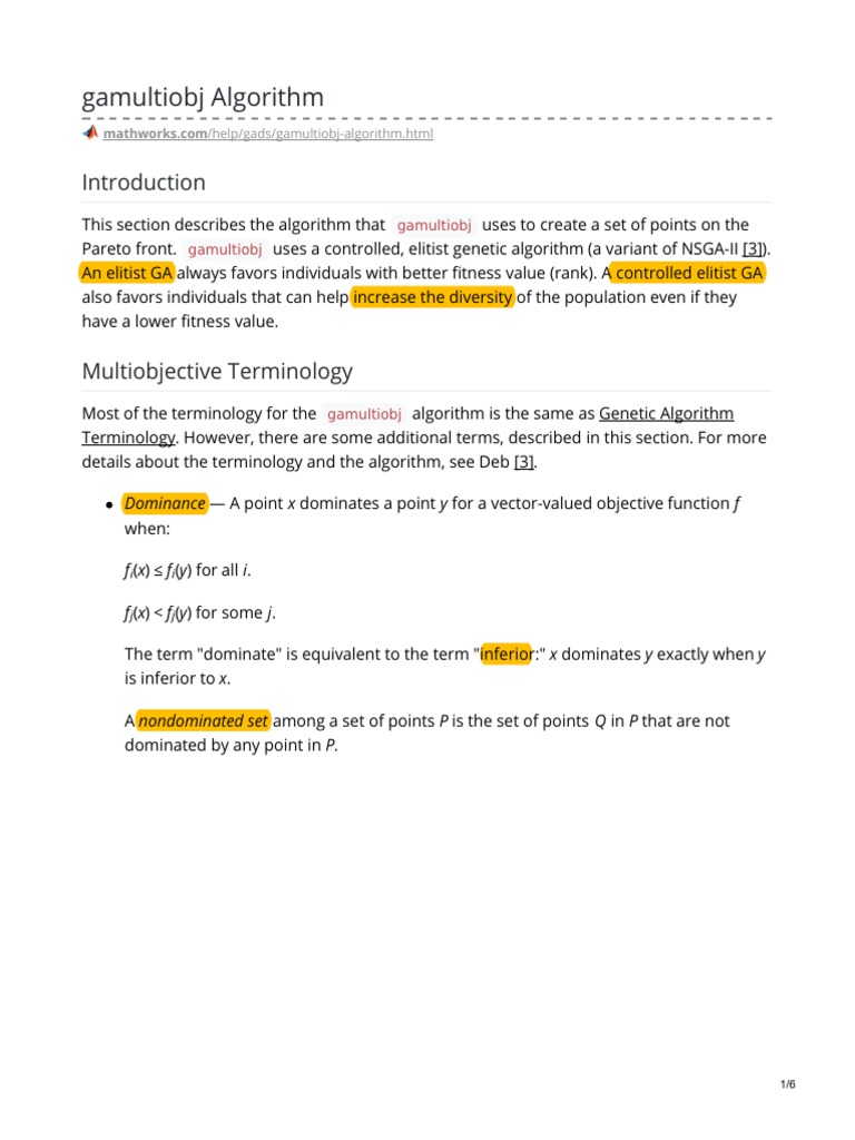 mathworks.com/help/gads/gamultiobj-algorithm.html