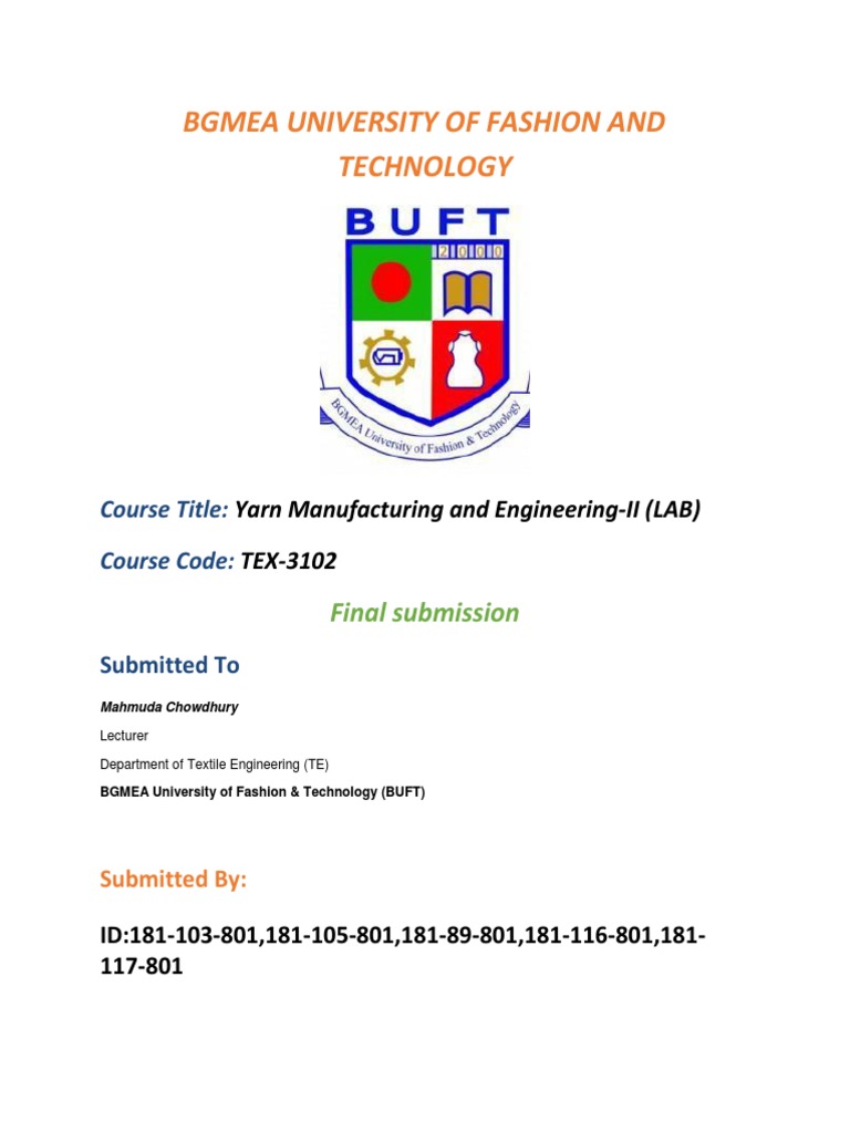 Course Title: Yarn Manufacturing and Engineering-II (LAB)