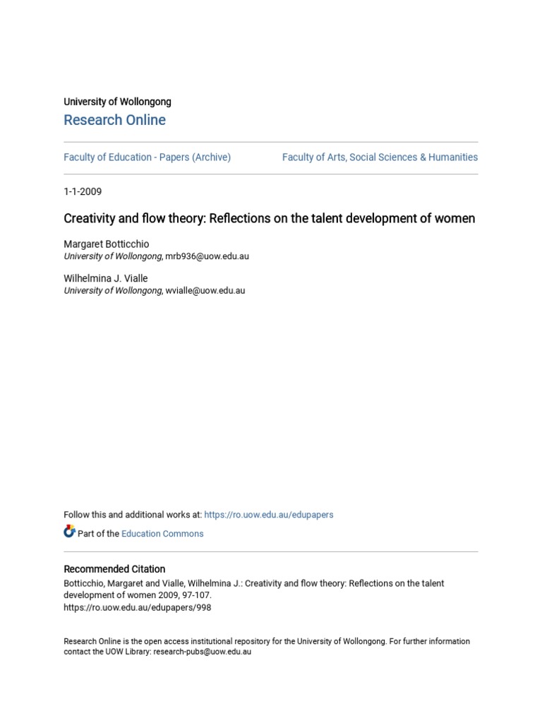 Botticchio, Margaret and Vialle, Wilhelmina J.: Creativity and flow theory: Reflections on the talent