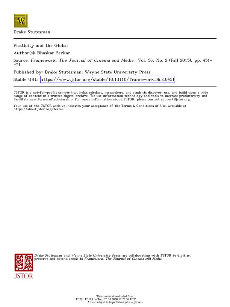 Framework 56, No. 2, Fall 2015, pp. 451–471. Copyright © 2015 Wayne State University Press, Detroit, Michigan 48201-1309.