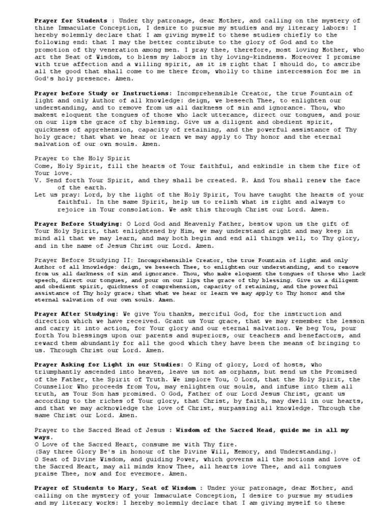 Prayer Before Studying: O Lord God and Heavenly Father, bestow upon us the gift of