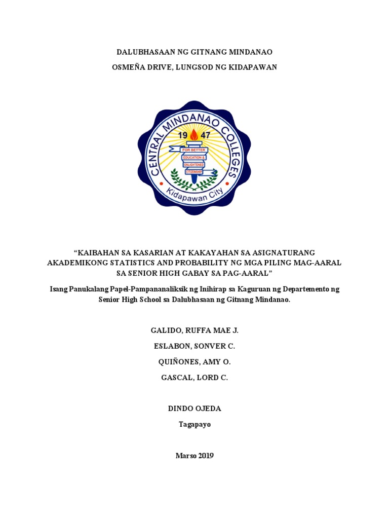 pagdating sa Matematika. Ang pag-aaral ay sasaklaw lamang sa mga mag-aaral ng Central