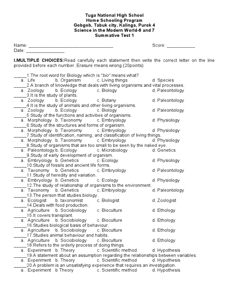 _____2.A branch of knowledge that deals with living organisms and vital processes.