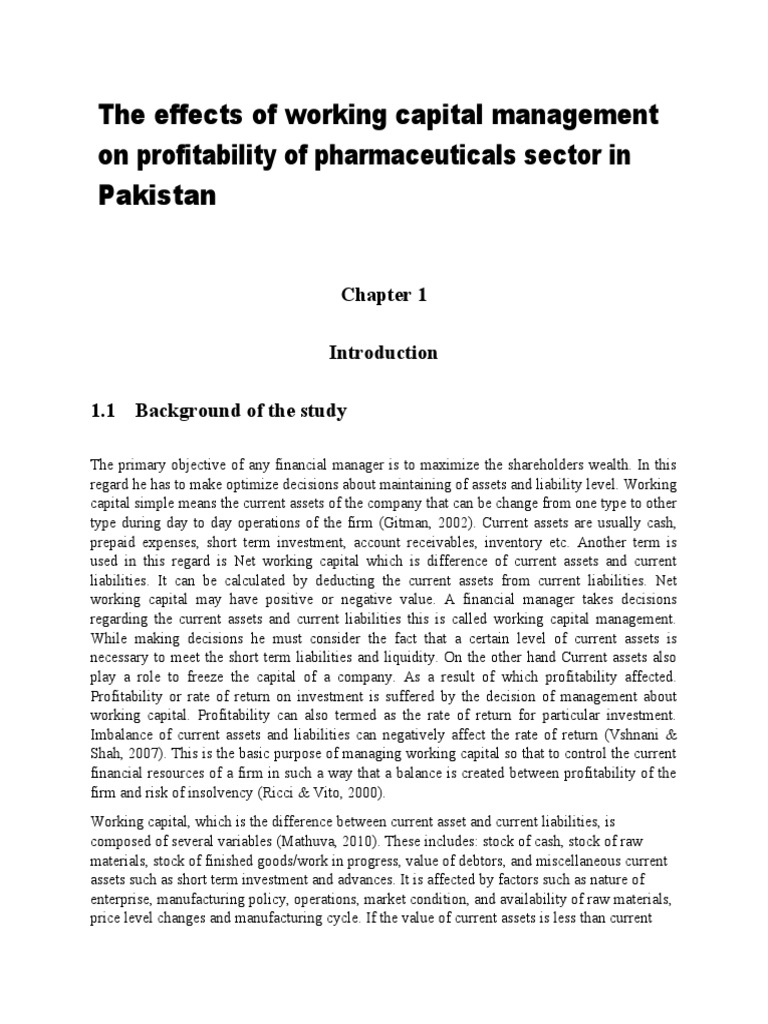 Capital Management on the Profitability of pharmaceuticals sector of Pakistan and