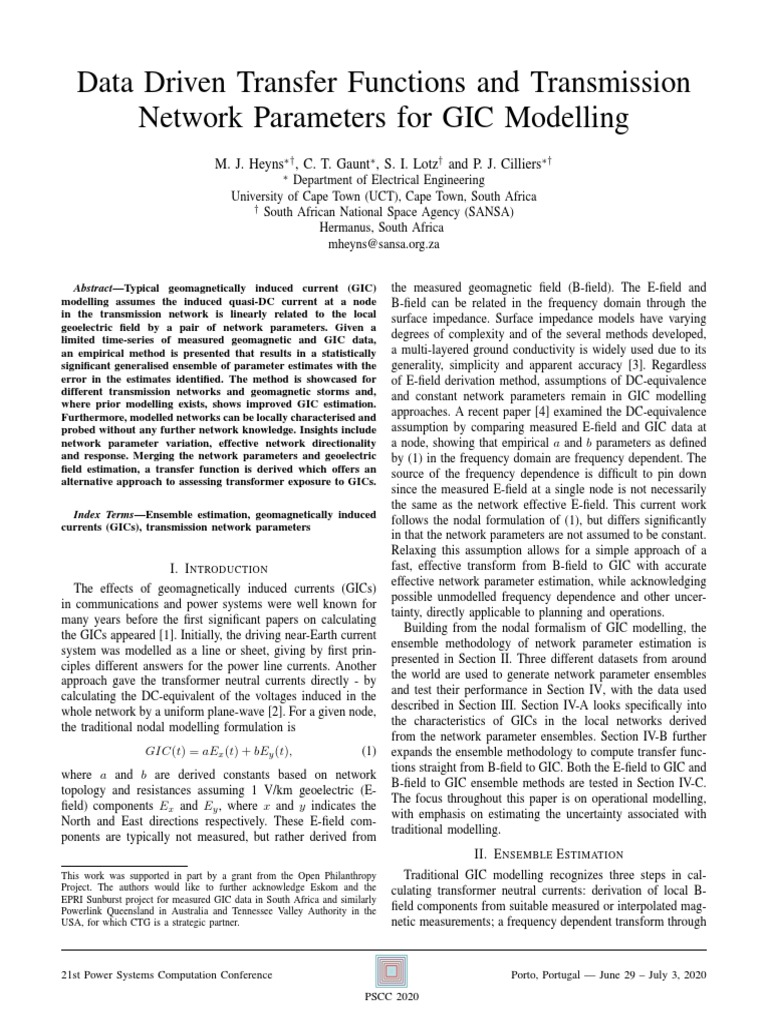 no. 6, pp. 1–18, 2018. [20] M. Ingham et al., “Assessment of GIC based on transfer function