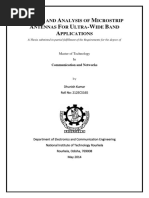 This thesis involves the design and analysis of Microstrip patch antenna which