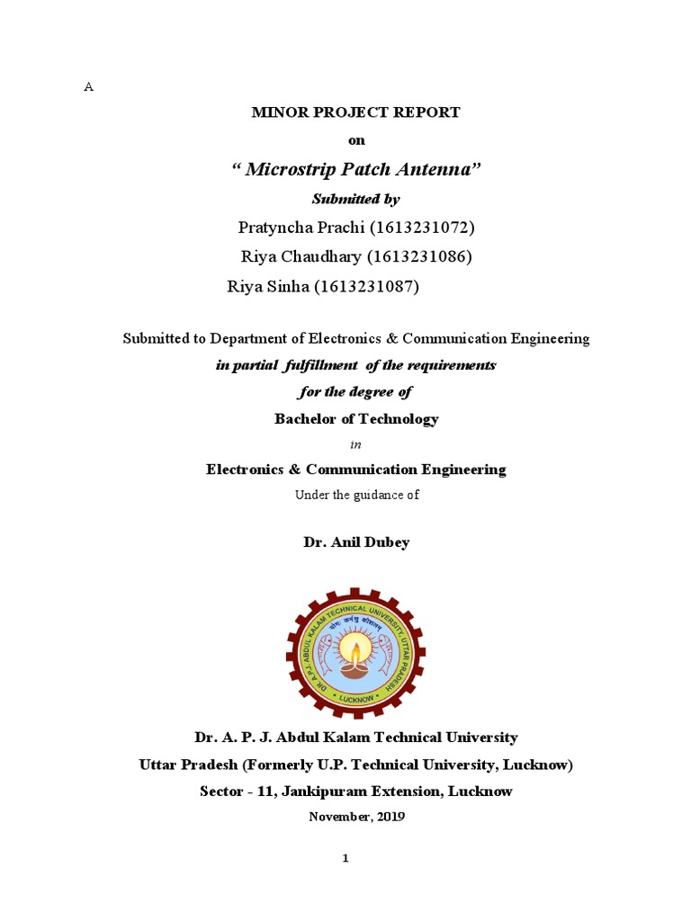 This project is done as a semester project known as “Dual Band Microstrip Patch