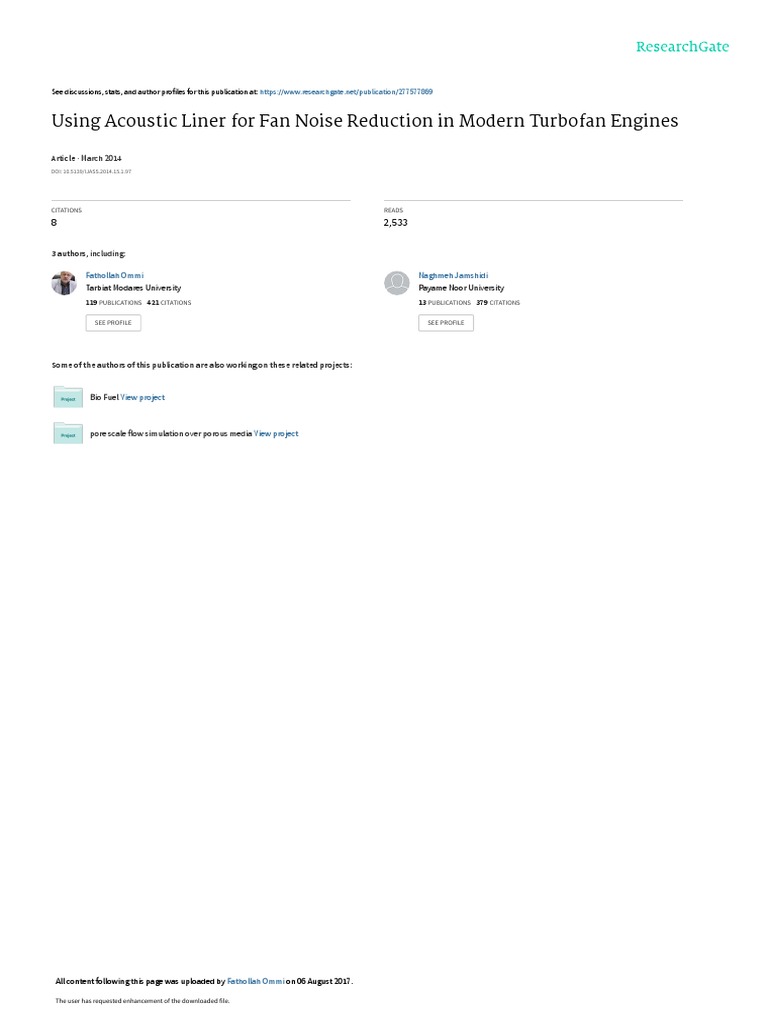 Key words: Turbofan Engine, Turbofan Engine Noise, High Bypass Turbofan Engine, Fan Noise Reduction, Acoustic Liner.