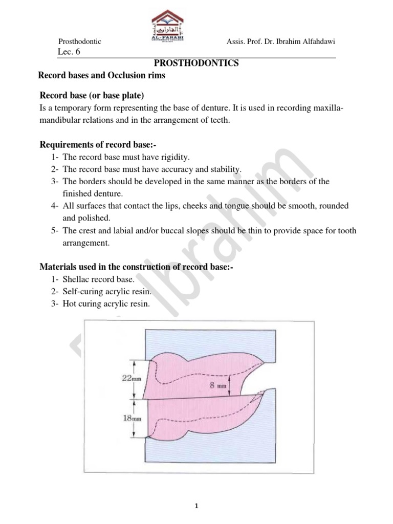 1- The maxillary rim should have a slight labial inclination and the maxillary labial