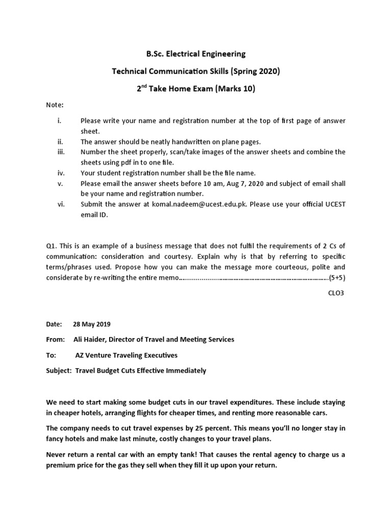 considerate by re-writing the entire memo…..................……………………………………………………..(5+5)
