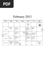 February 2013 Pre-K Activities Calendar
