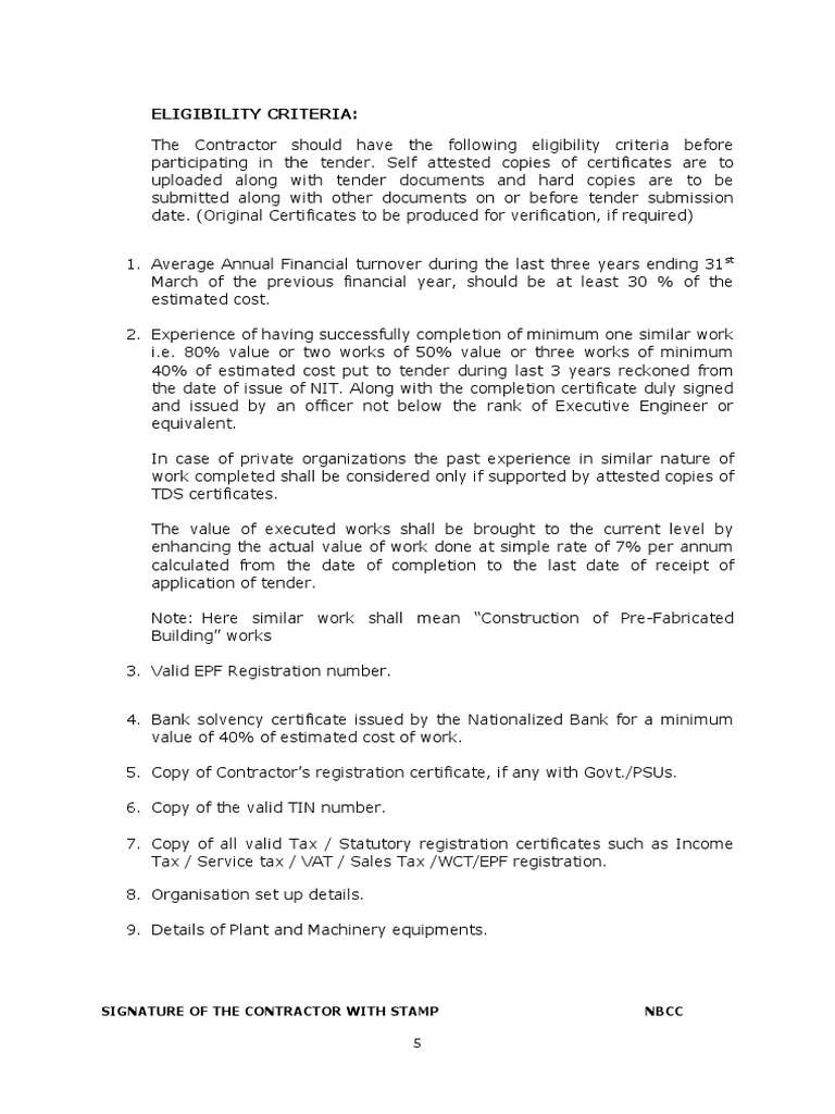 SIGNATURE OF THE CONTRACTOR WITH STAMP NBCC