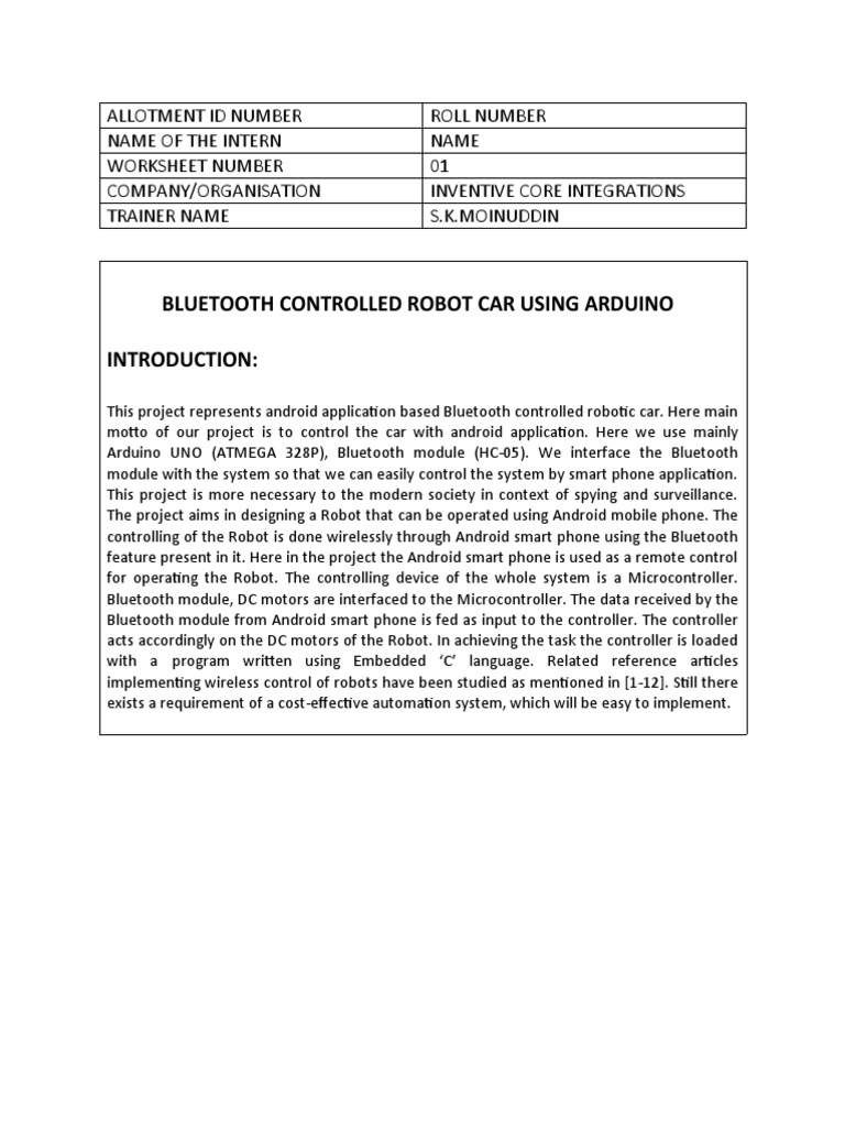 BLUETOOTH CONTROLLED ROBOT CAR USING ARDUINO