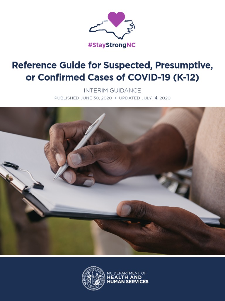 Reference Guide for Suspected, Presumptive, or Confirmed Cases of COVID-19 (K-12) Interim Guidance • Published June 8, 2020; Updated July 14, 2020 3