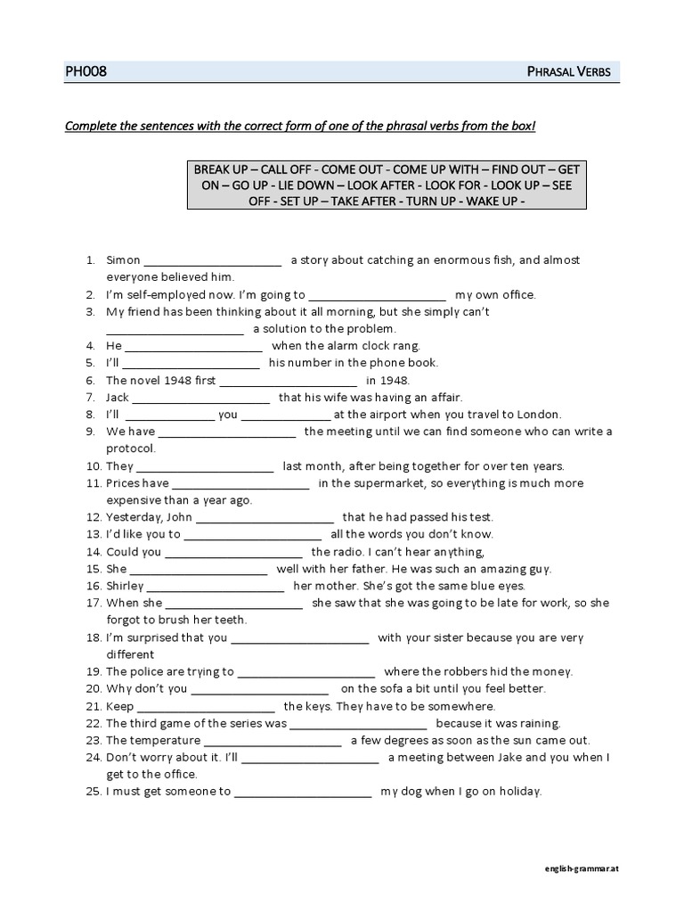 BREAK UP – CALL OFF - COME OUT - COME UP WITH – FIND OUT – GET