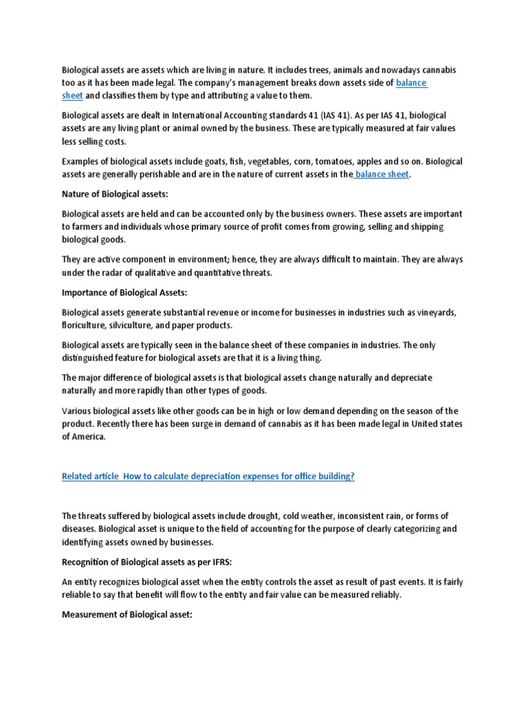 diseases. Biological asset is unique to the field of accounting for the purpose of clearly categorizing and