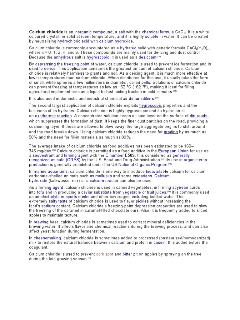 used to de-ice. This application consumes the greatest amount of calcium chloride. Calcium