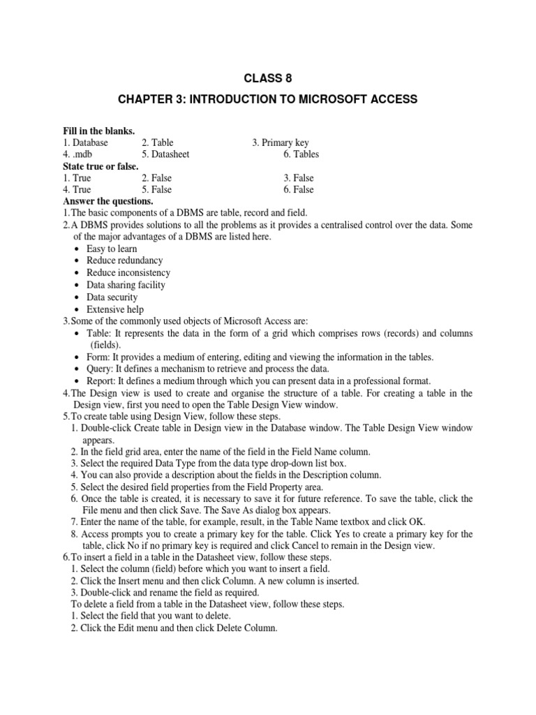 CHAPTER 3: INTRODUCTION TO MICROSOFT ACCESS