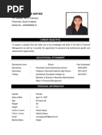 Tertiary: Business Administration Major in Finance Degree Holder