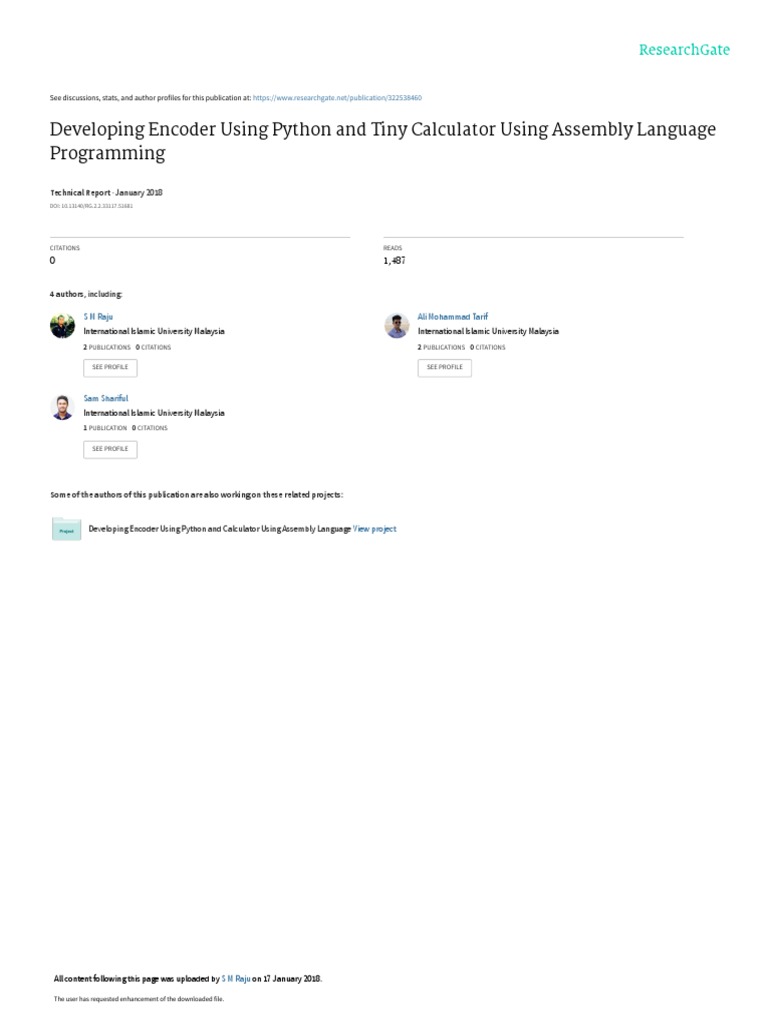 Developing Encoder Using Python and Tiny Calculator Using Assembly Language Programming