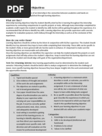 goals and learning objectives provides a means for evaluation of your experience. Writing the learning objectives is a