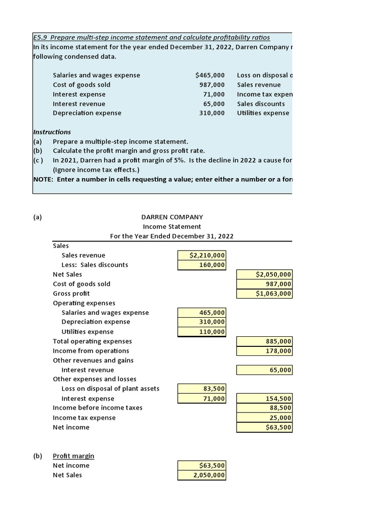 9 Prepare multi-step income statement and calculate profitability ratios