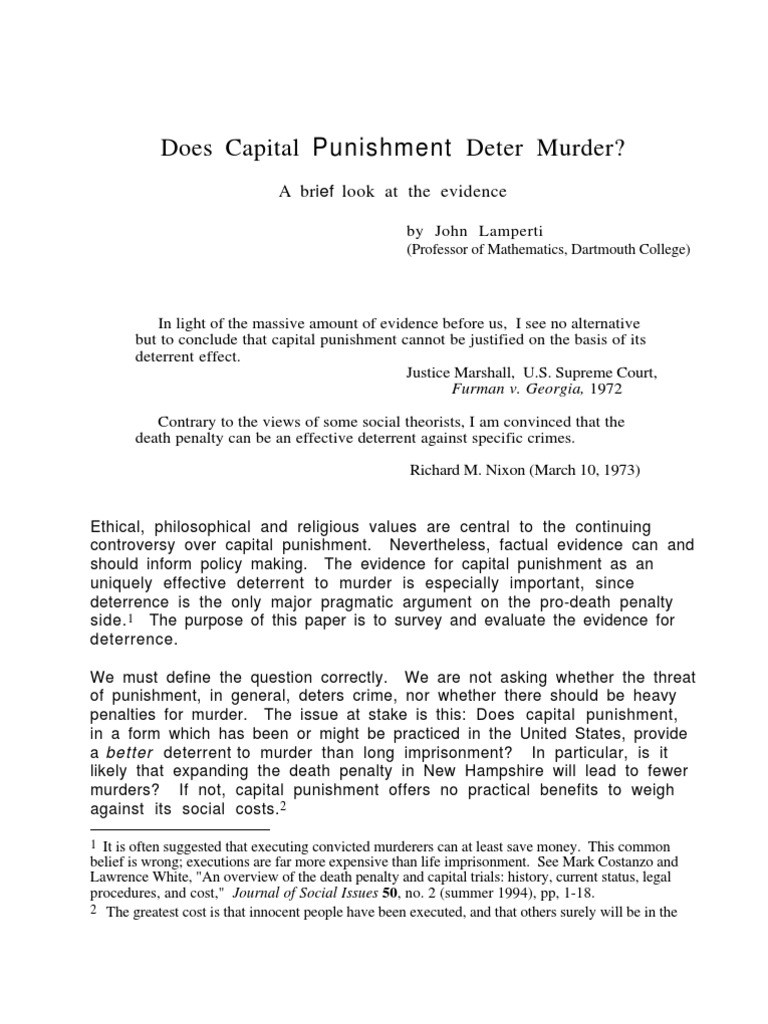 capital punishment, and deterrence: a review of the literature," chapter 9 in Bedau (1997), note 2.