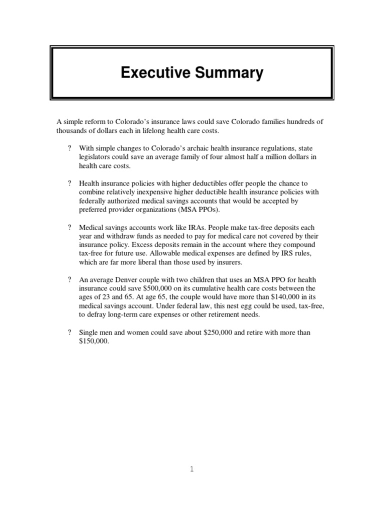 risks for small groups in Colorado, many insurers are unwilling to sell MSA policies to