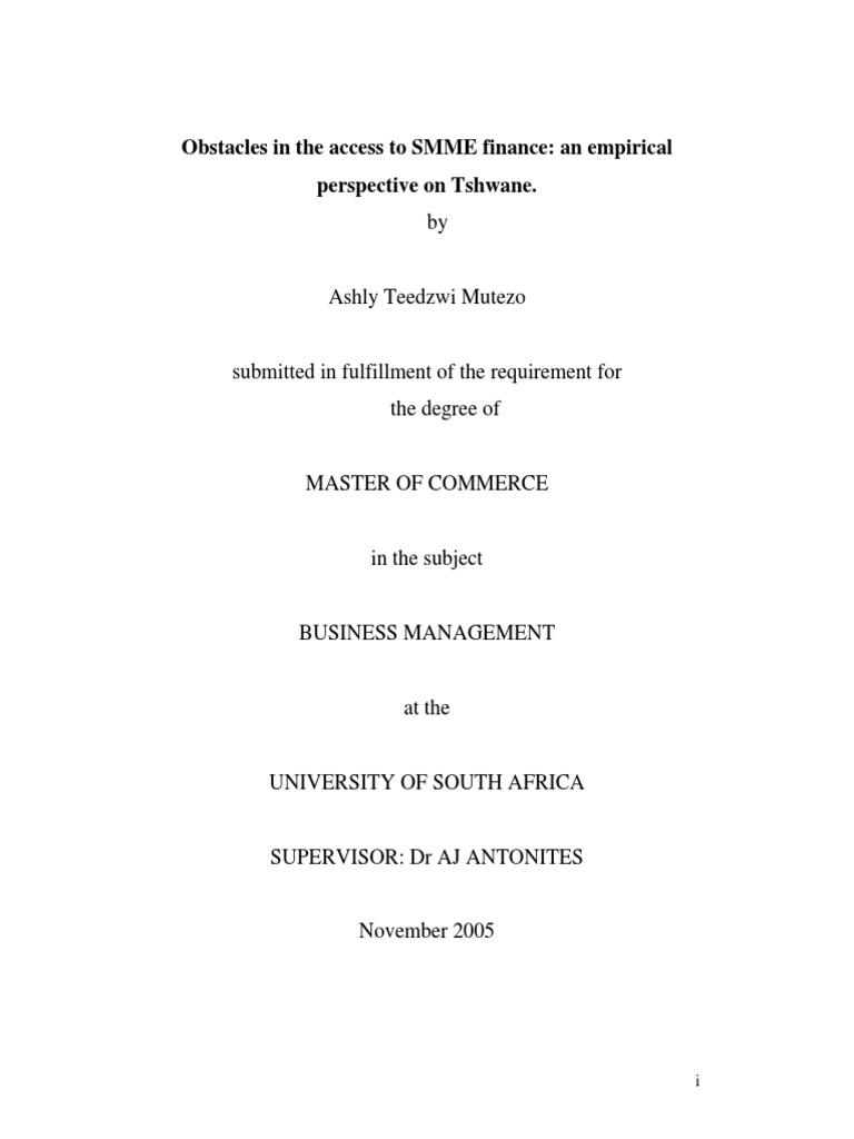 Obstacles in the access to SMME finance: an empirical perspective on Tshwane