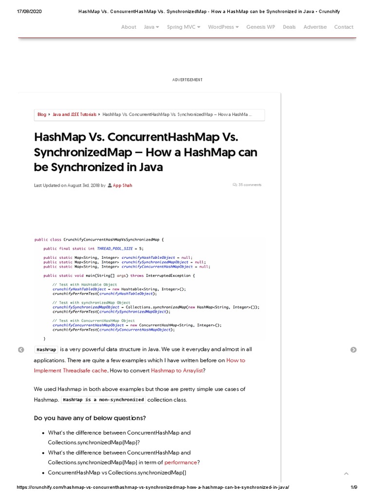 17/08/2020 HashMap Vs. ConcurrentHashMap Vs. SynchronizedMap - How a HashMap can be Synchronized in Java • Crunchify