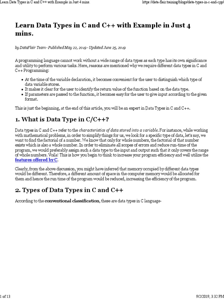Learn Data Types in C and C++ with Example in Just 4 mins. https://data-flair.