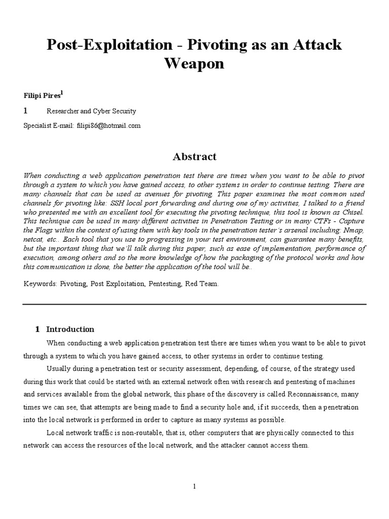 Keywords: Pivoting, Post Exploitation, Pentesting, Red Team.
