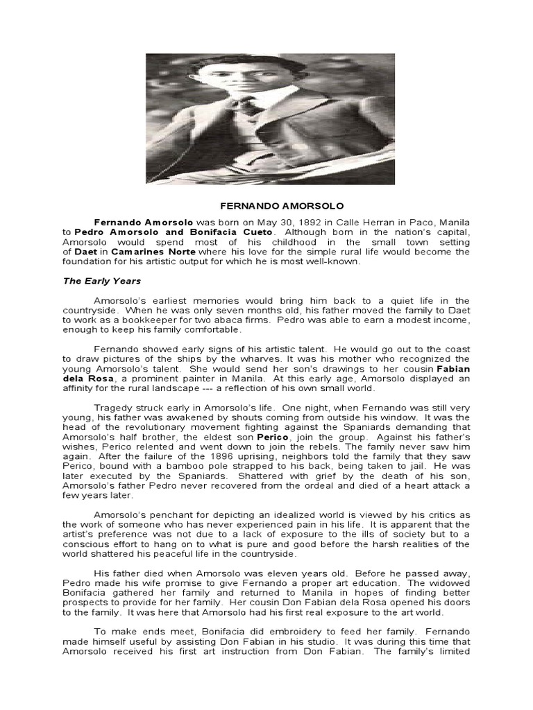 dela Rosa, a prominent painter in Manila. At this early age, Amorsolo displayed an