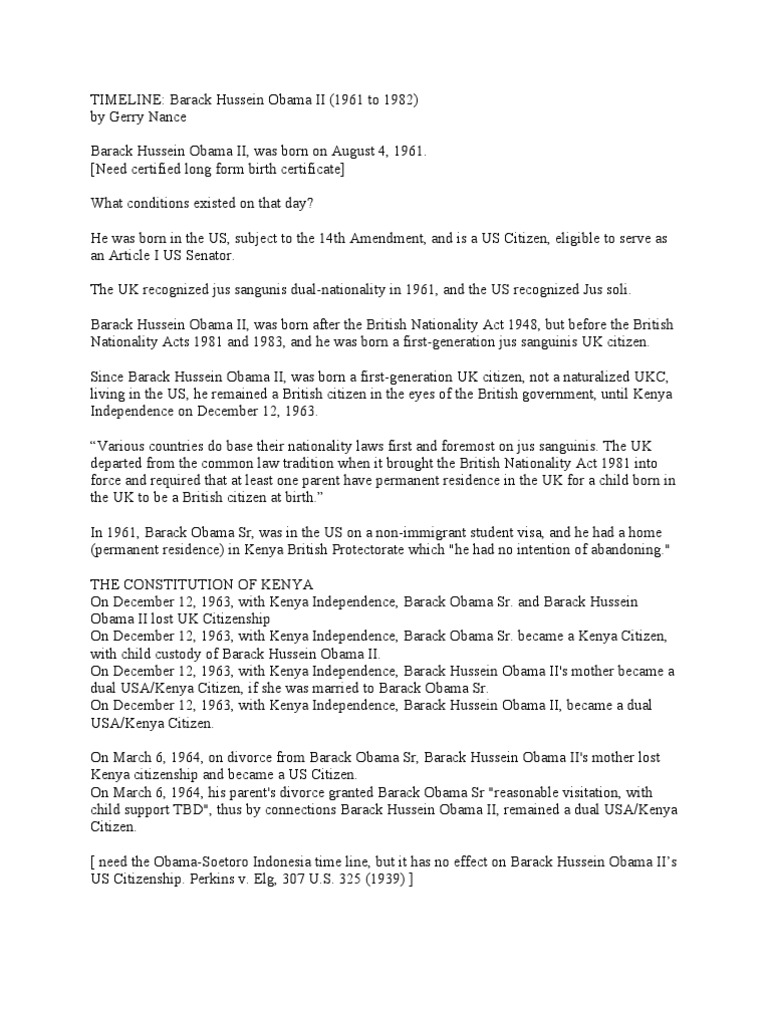 Timeline Barack H Obama II 1961 To 1982