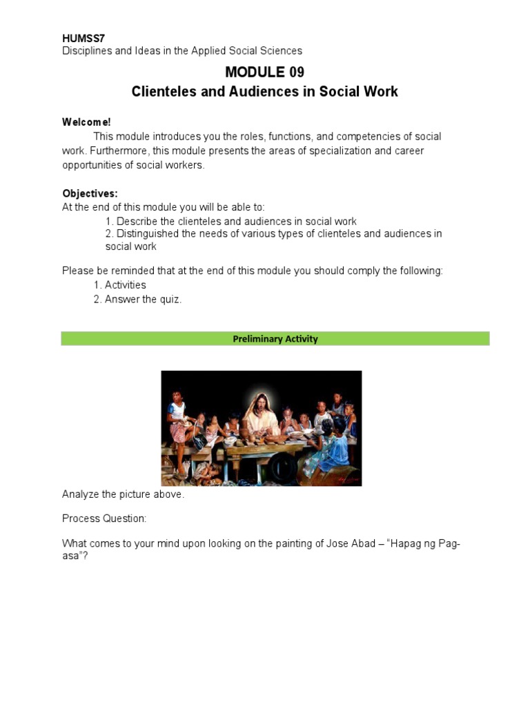 1. Describe the clienteles and audiences in social work