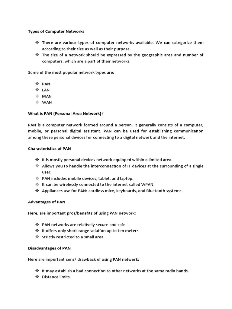 PAN is a computer network formed around a person. It generally consists of a computer,